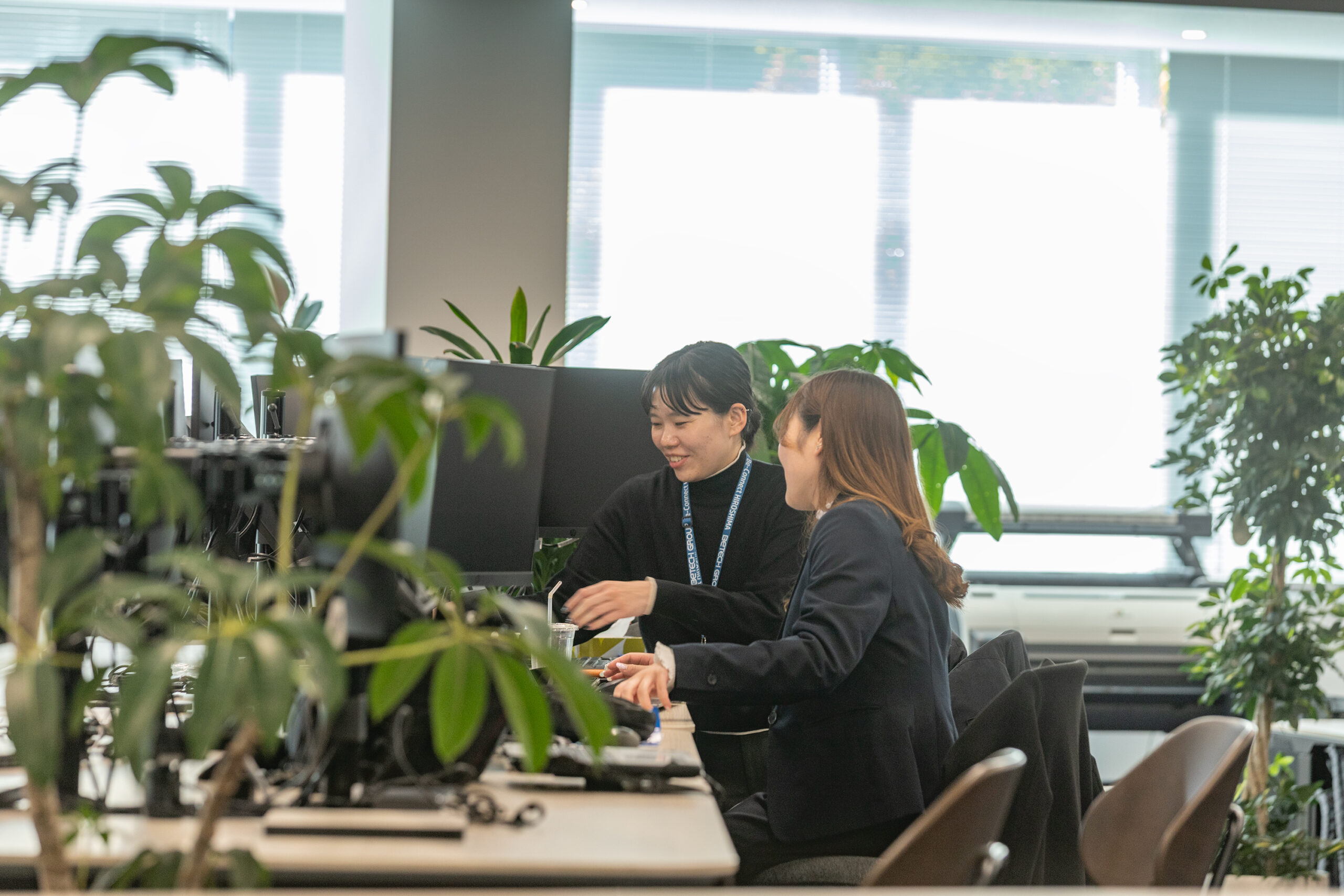 現在、女性社員は営業2名、事務担当2名の、計4名です。性別に関係なく先輩や上司が丁寧にフォローしてくれます。ビーテックサービスの社員は日中ほとんど外回りや現場に出ていますし、グループ会社の社員さん達も同じフロアで働いていますので、男女比は特に気になりません。